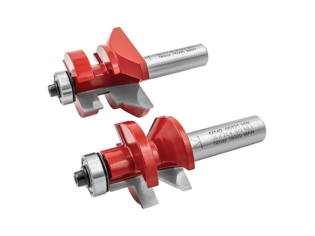 Set fréz M142 je určený pro výrobu spoje pero-drážka, například při montáži palubek a obkladů. Lze použít ve frézovacích stolcích a CNC frézkách. Při práci ve frézovacím stolku doporučujeme použít pravítko.