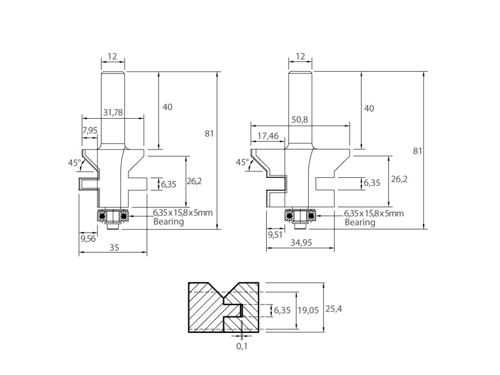 S těmito frézami můžete kombinací dvou nebo více průchodů vytvořit desítky složitých spojů. Pro frézování podél šablony lze vložit kopírovací ložisko na stopku (s omezovacím kroužkem) nebo použít kopírovací kroužek pro ruční frézku.