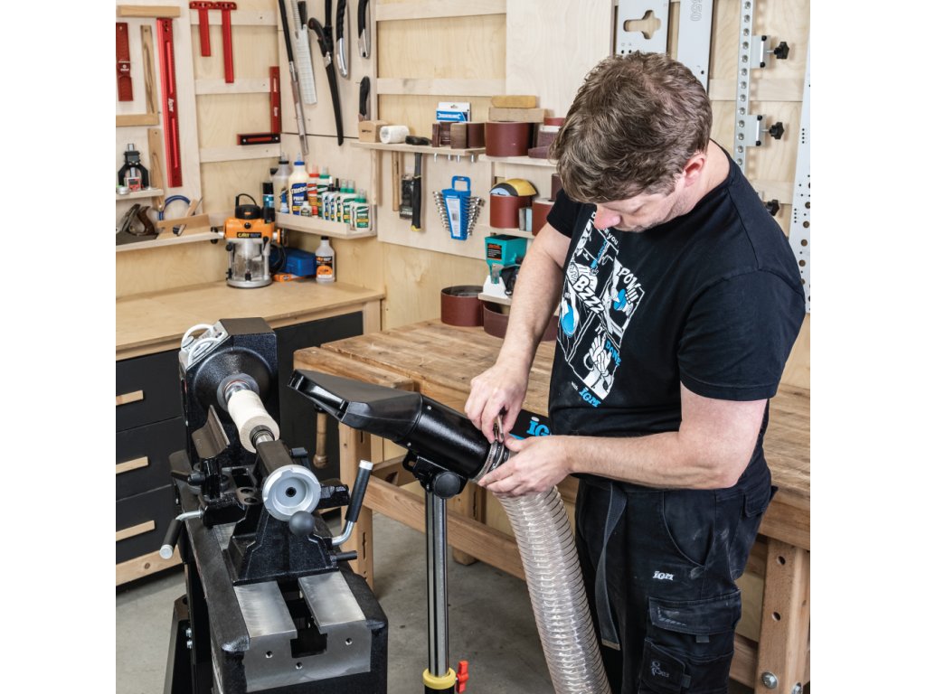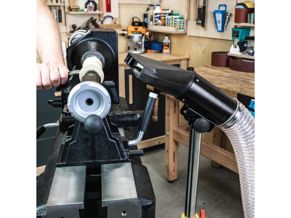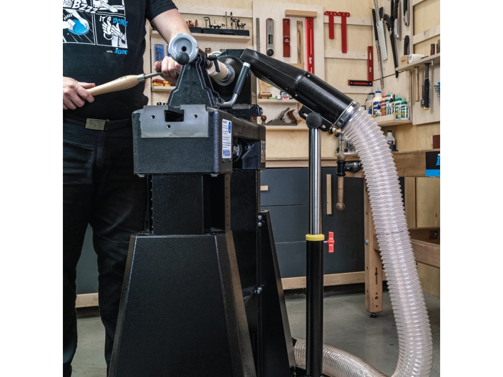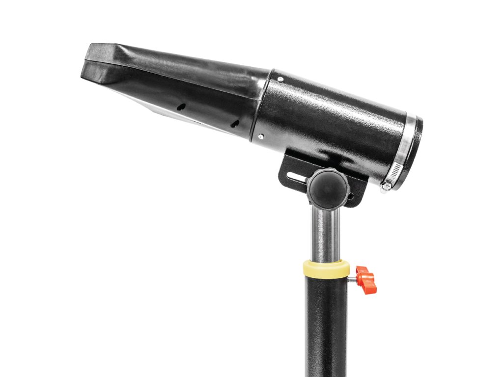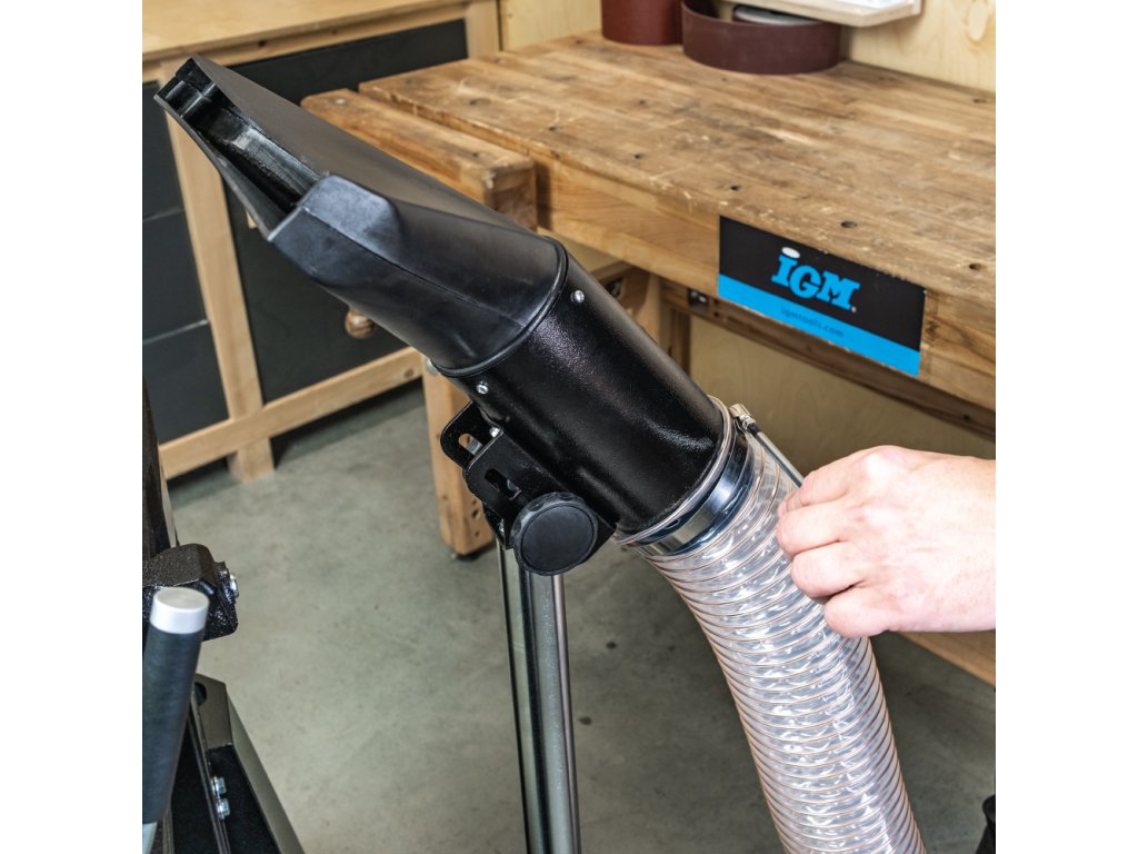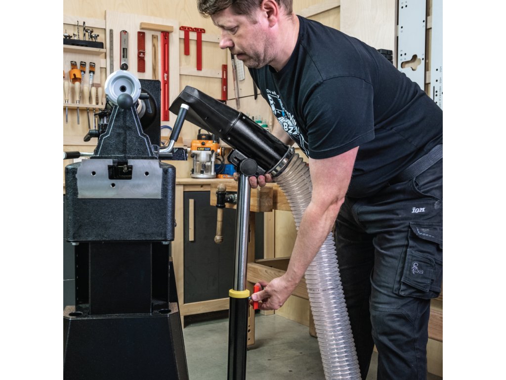 Praktická odsávací hlava na nastavitelném stojanu. Hodí se zejména pro odsávání odpadu od stroje či dílce v případech, kdy nejde přímo připojit hadici ke stroji, například při soustružení. Jednoduše připojte 100mm odsávací hadici ke 100mm kovovému připojení na plastovém nástavci. Ocelový stojan poskytuje užitečné výškové rozmezí od 750-1,200 mm a celkově měří 90 cm, bude tedy pevně stát i na nerovné podlaze! Nástavec má rozměry 320 x 35 mm a dovoluje optimální proudění vzduchu, doporučujeme připojit k odsavači alespoň 750 m3/hod.