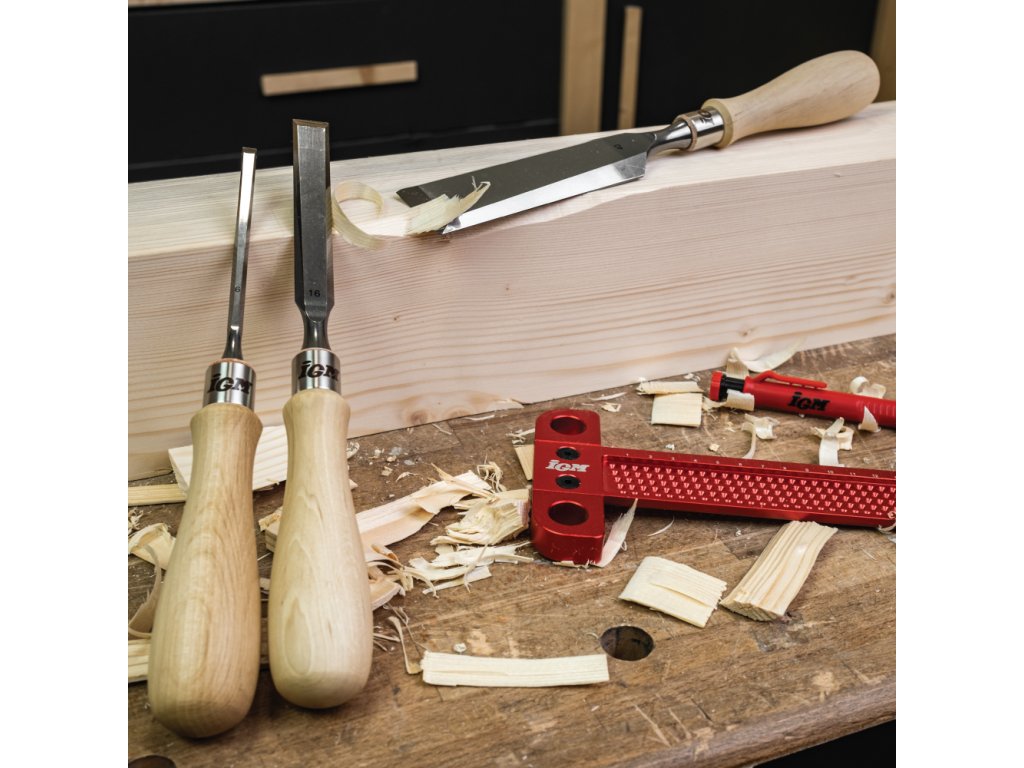 Vynikající ploché dláto značky IGM je vhodné pro truhláře, kteří ocení kvalitu a tradiční zpracování. Je určeno na dlabání ostrých rohů, ozubů, rozporů a čepů. Jemně vybroušená, leštěná čepel je kovaná z kvalitní vysoce legované oceli s tvrdostí 60 HRC. Proto oproti běžným dlátům zůstává dlouho ostrá. Hranu ostří zbroušenou pod 25° úhlem vyžaduje před prvním použitím honování pro dosažení mimořádné ostrosti. Také doporučujeme provést 30° mikro nábrus na hraně ostří pro prodloužení výdrže ostří. Úzké, zbroušené boky čepele jsou ideální pro práci v těsných prostorách, zvláště při výrobě čepů a rybin. Rukojeť dláta je vyrobena z kvalitního a houževnatého habru, který odolá i silným úderům paličkou. Rukojeť je ručně najemno leštěná a pastovaná s originálním ergonomickým tvarem, který příjemně padne do ruky. Dláto je velmi odolné proti nárazům, protože je čepel usazena v pevné habrové rukojeti s koženým kroužkem pro tlumení nárazů a zděří z nerezové oceli. To oceníte zvláště při tvorbě dlabů pomocí paličky. Ploché dláto IGM je zkrátka jedinečný nástroj, který Vám vydrží celé generace.