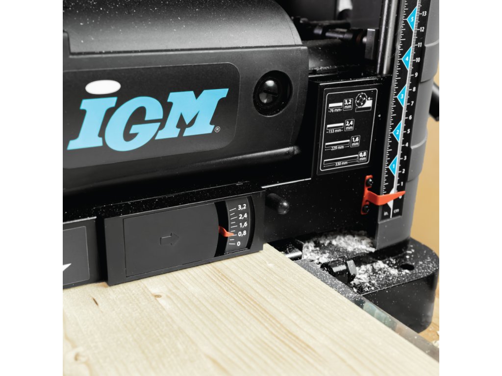 • Hloubkový doraz se sedmi polohami pro opakované tloušťkování stejné výšky