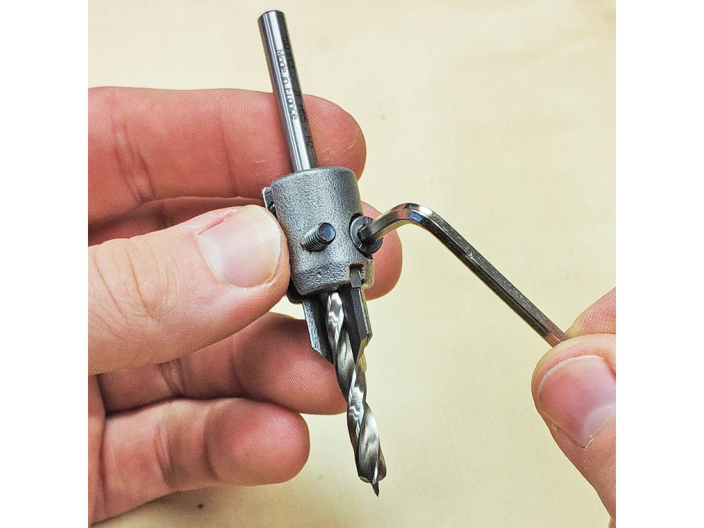 Stavitelný záhlubník s HM tvrdokovovým břitem pro vrtáky 3 až 7 mm. Záhlubník lze použít jak na měkké, tak i tvrdé dřevo.