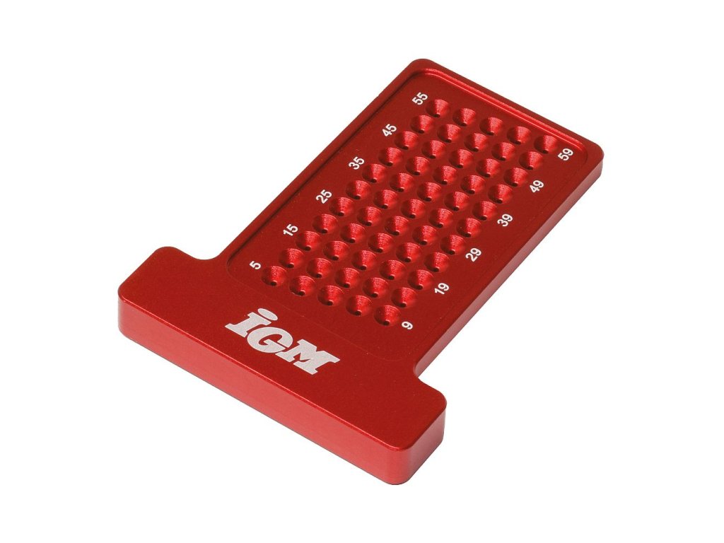 Malé kompaktní značící pravítko pro rýsování dokonale rovnoběžných čar podle hrany materiálu. Vložte tužku do odpovídajícího otvoru a vytvořte rovnoběžnou čáru posouváním pravítka po hraně dílce. Rovnoběžnou čáru můžete rýsovat ve vzdálenosti 5 až 60 mm od hrany dílce. Každý otvor představuje 1 mm.