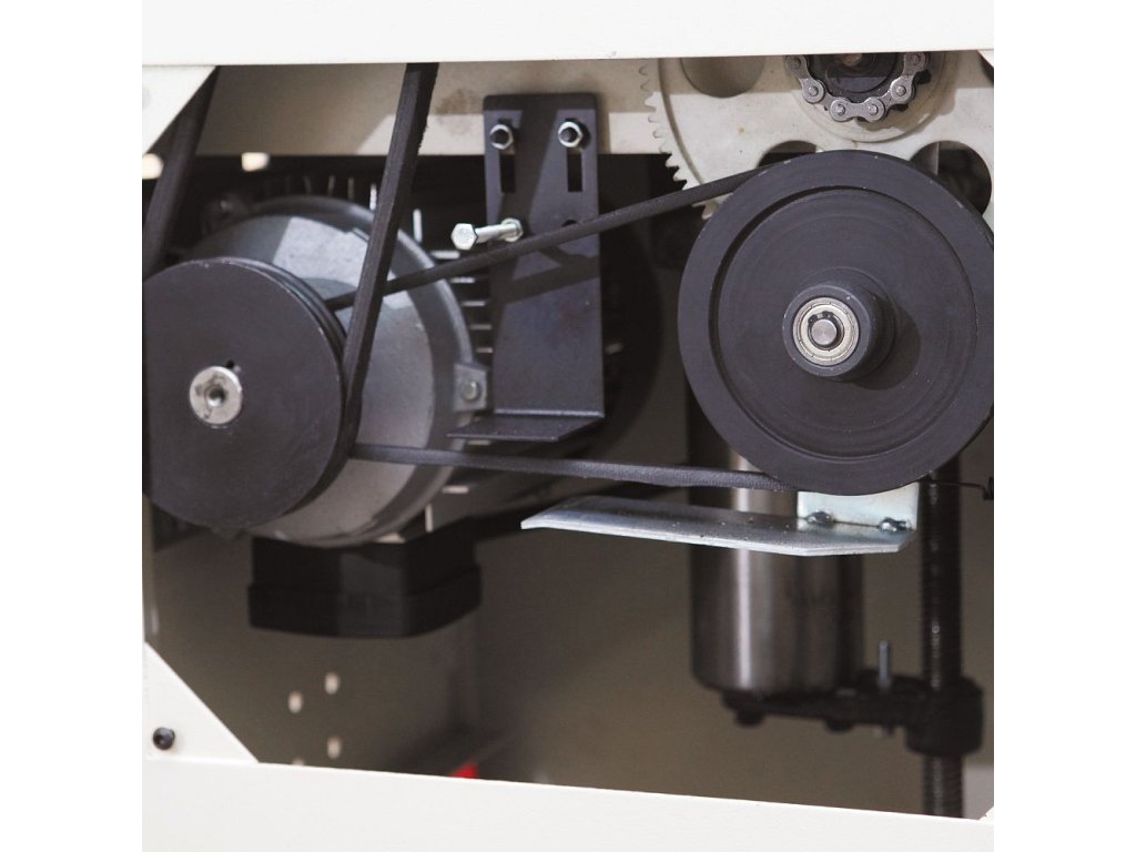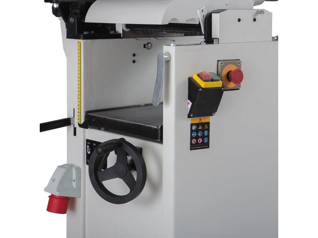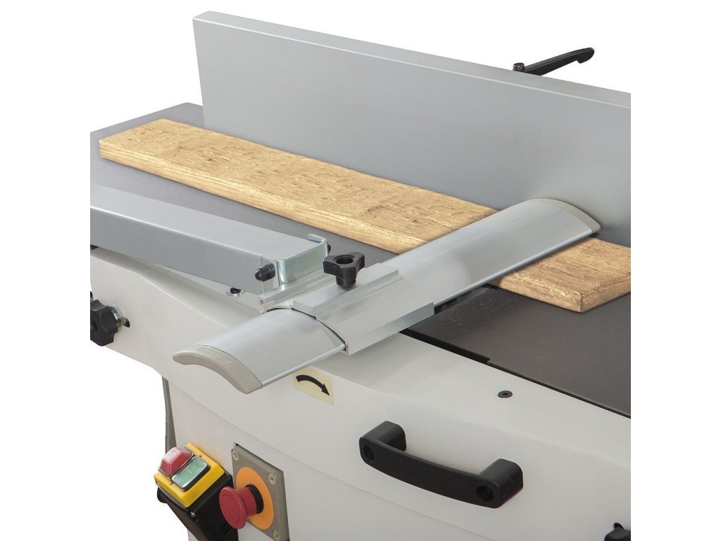 Pohodlně pouze jednou rukou lze zvednout litinový stůl. Přechod od srovnávání k tlouštkování nemůže být jednodušší. Se svým dlouhým stolem a přesným pravítkem je zde přesnost standardem, stejně jako vždy výborný povrch díky 3 nožové hlavě. Nastavení výšky vstupního stolu pomocí excentrické páky je jednoduché a snadné. Možnost nastavení výšky výstupního stolu excentrem. Odsávací hubice udržuje stroj čistý při připojení k vhodnému systému odsávání. Stroj pro profesionální dílny nebo údržby i kutily s širokým rozsahem použití.