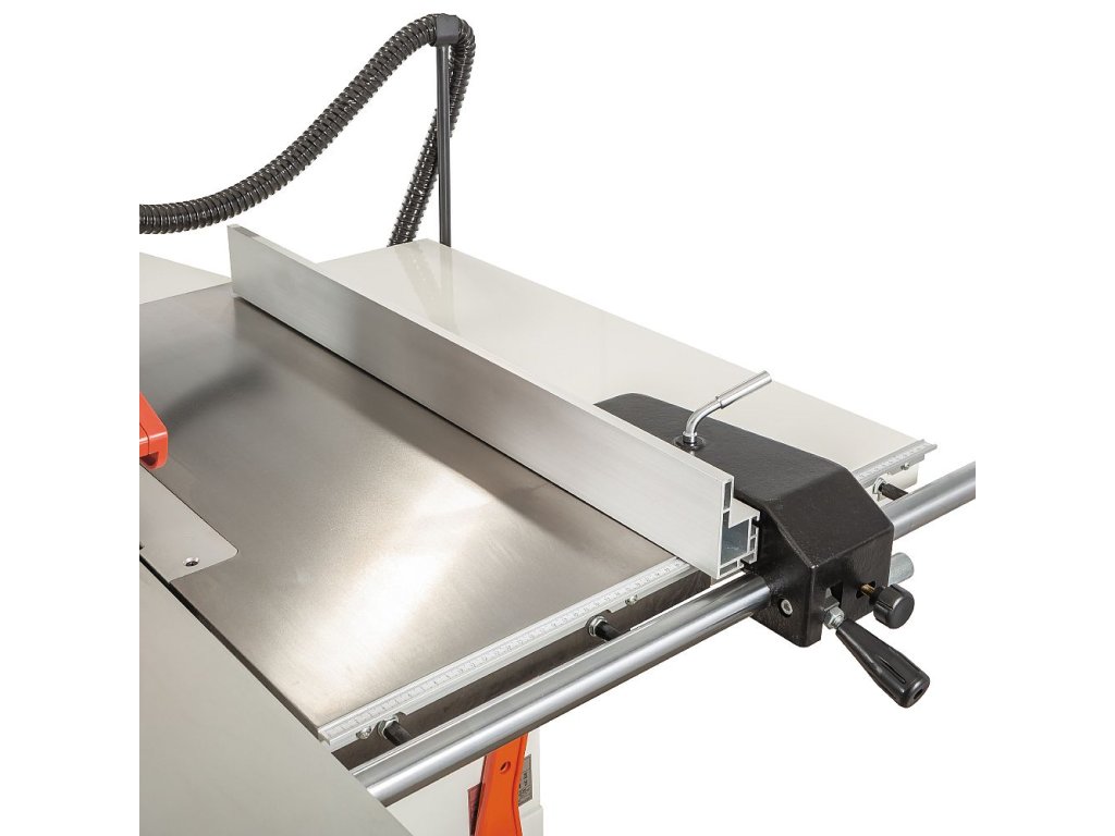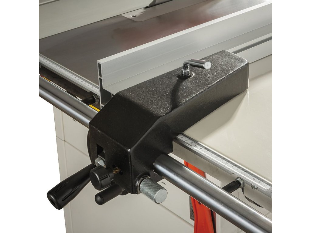 • Posuvný stůl s pravítkem, překlopnými dorazy a podpěrami