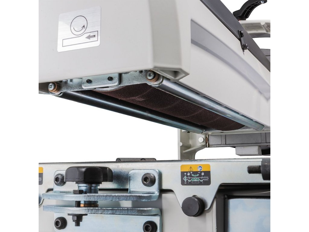 Představujeme zcela nově navrženou válcovou brusku JET JWDS. Silný motor nabízí více než dost výkonu na zvládnutí jakéhokoliv broušení. Inovativní systém nastavení rovinnosti stolu vůči brusnému válci umožňuje jednoduchou úpravnu sklonu podle typu broušení a požadavku na finální výsledek. Naklonění stolu jednoduše nastavíte pootočením kola. Regulace pro plynulou změnu rychlosti posuvu umožňuje zvolení optimální rychlosti pro ideální výsledek, zatímco technologie Sandsmart™ průběžně monitoruje zatížení stroje a zabraňuje tak přetížení motorů. Přesná konstrukce odsávacího krytu, která kopíruje tvar válce, zefektivňuje odsávání a zabraňuje pilinám a prachu dostat se zpět mezi obrobek a válec. JET JWDS Válcová bruska je vše, co potřebujete pro bezstarostné vybroušení povrchu.
