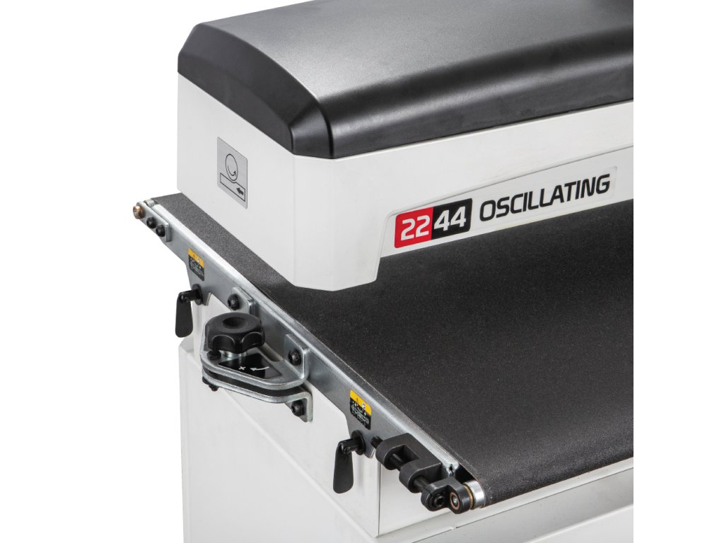 Stroj je vybaven unikátní technologií Sandsmart™, která umožňuje automatické snížení rychlosti posuvu při přetížení. Přepracovaný systém posuvu táhne obrobek skrz brusku namísto tlačení. Díky nastavitelným přítlačným válečkům, které tlačí obrobek dolů, bruska nepodbrušuje přední a zadní hranu obrobku. Prachový kryt kopíruje tvar válce, čímž umožní účinnější odsávání prachu. Výměna brusného pásu je bez použití nářadí snadná a rychlá, díky vlastnímu napínacímu mechanismu, který je zabudovaný do brusného válce. Vodítka TRACKERS™ značně snižují potřebu ručního seřizování podávacího pásu. Bruska má praktický držák odsávací hadice, což zaručuje, že hadice nepřekáží při práci.