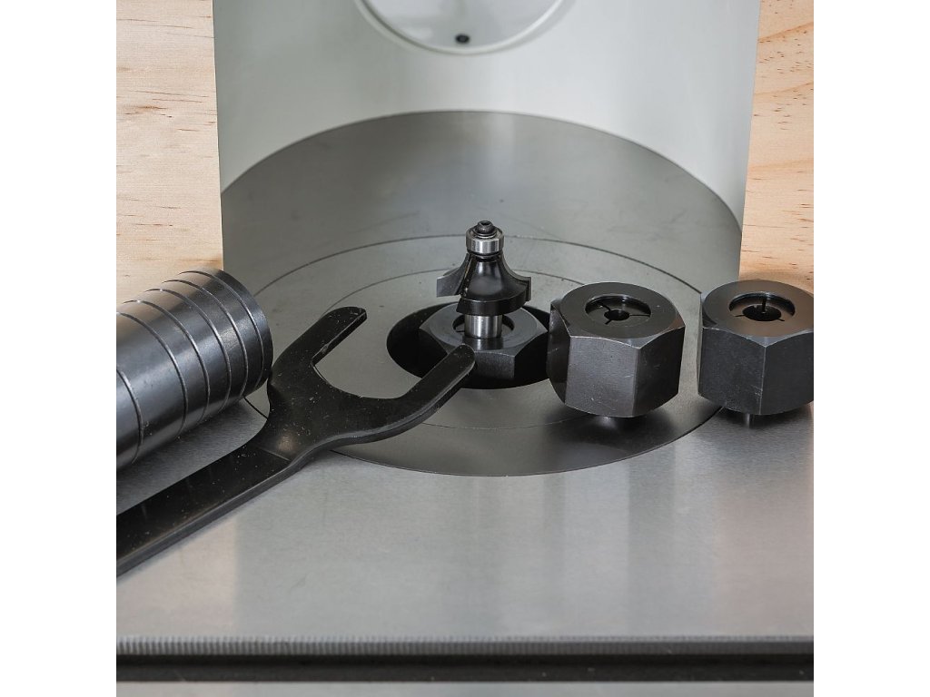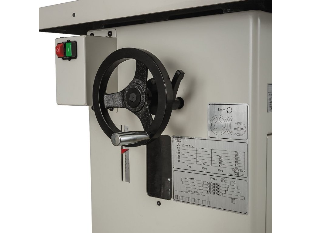 JWS-34KX je kombinací dvou strojů, klasické spodní frézky pro frézovací hlavy s vřetenem 30mm a frézovacího stolku pro stopkové nástroje. Frézka je totiž vybavena dvěma kleštinami 8 mm a 12 mm pro upnutí stopkových fréz. Stroj je konstruován tak, aby při použití nejvyšších otáček, mohl používat stopkové frézy o průměru 35 mm nebo větší (pro menší frézy nejsou otáčky dostatečně vysoké). Stroj má plně nastavitelné pravítko. Jemné nastavení na výstupním pravítku, odsávání prachu o průměru 100 mm na zadní straně. Výškové nastavení vřetena je na přední straně stroje pomocí kola. Výměnu nástrojů lze urychlit pomocí zajištění vřetene. Pro obrábění tvarových dílců je stroj vybaven speciálním ochranným krytem. Na litinovém pracovním stole jsou T-drážky určené k upnutí čepovacího pravítka, které lze dokoupit jako volitelnou výbavu.