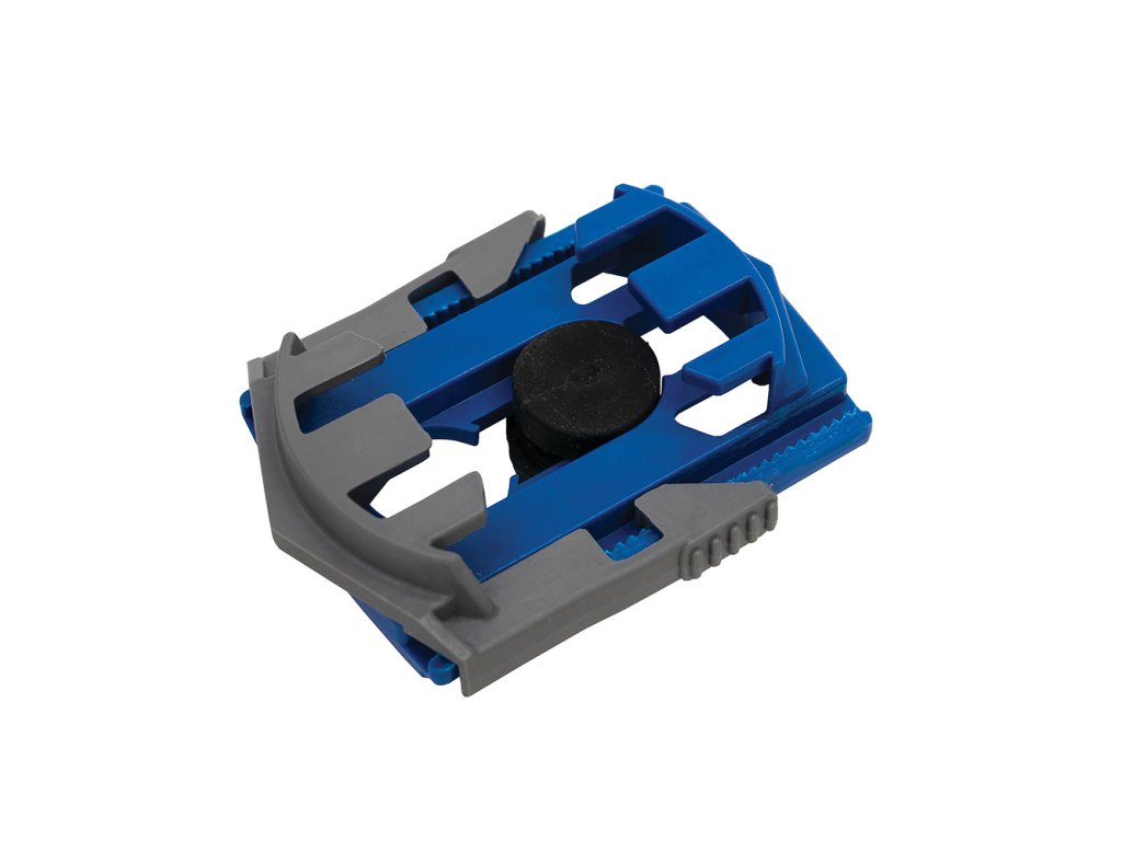 Kreg Adaptér na svěrku pro svrtávací přípravek Vám usnadní upnutí Kreg Svrtávacího přípravku. Univerzální adaptér se nasazuje na tělo přípravku a je vhodný pro jakoukoli svěrku Kreg i pro většinu rychloupínacích svěrek. Adaptér vytvoří plochu pro upnutí svěrky a přípravek drží pevně upnutý. Vám tak umožní ovládat přípravek pouze jednou rukou.