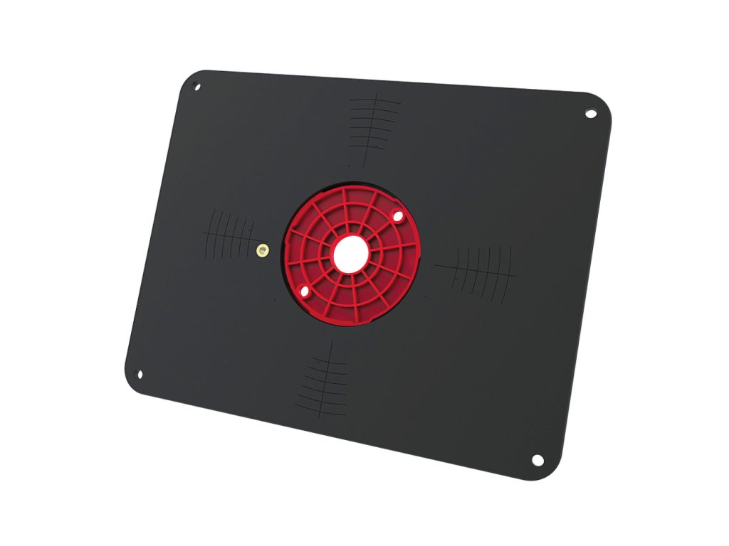 Deska je dodávána bez předvrtaných montážních otvorů. Zarovnávací značky vyryté na spodní straně vám pomohou s vycentrováním a montáží jakékoliv frézky.