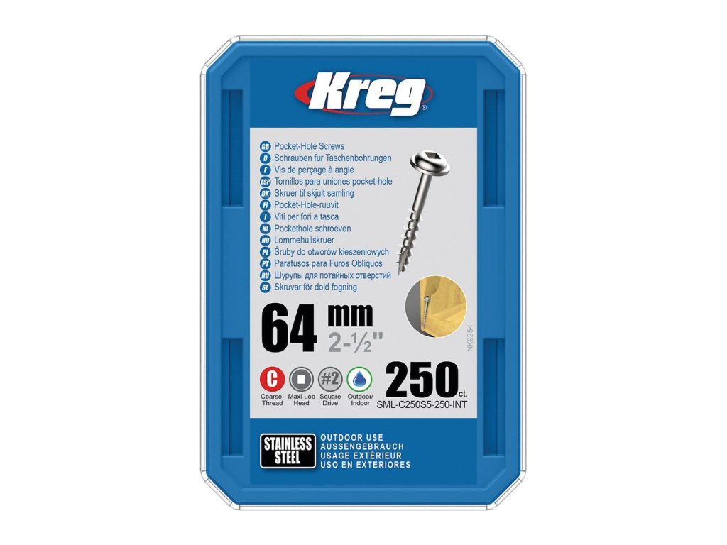 Kreg Nerez Maxi-Loc Šrouby pro skryté spoje - 64 mm, hrubý závit, 250 ks