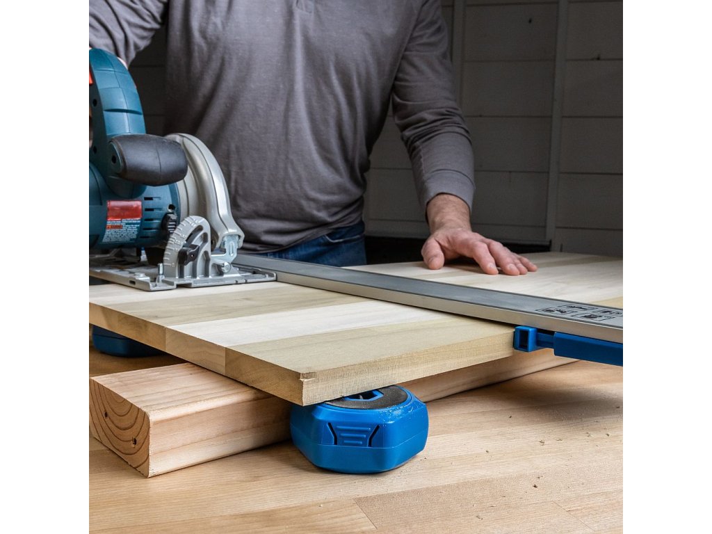 Kreg Protiskluzové podložky jsou vhodné pro fixaci materiálu při jakékoliv práci. Položením dílce na podložky vznikne mezi stolem a dílcem mezera vysoká 38 mm, která vám umožní dílec pohodlně brousit, řezat, frézovat atd.