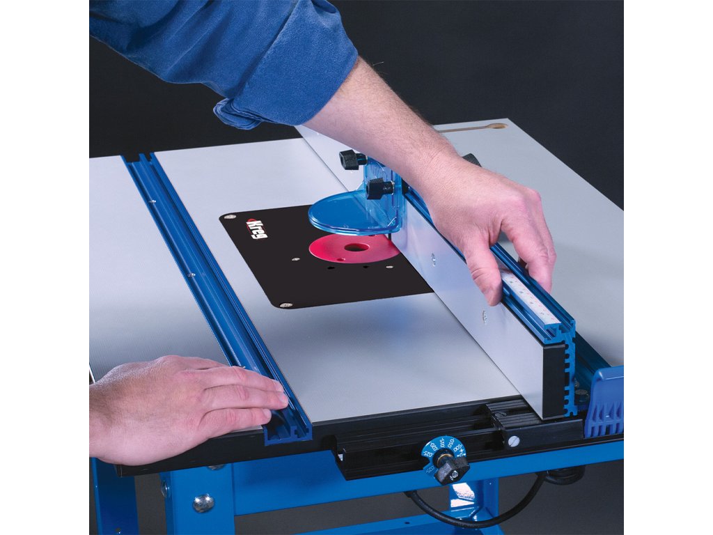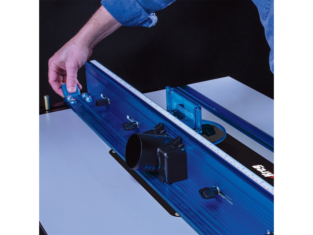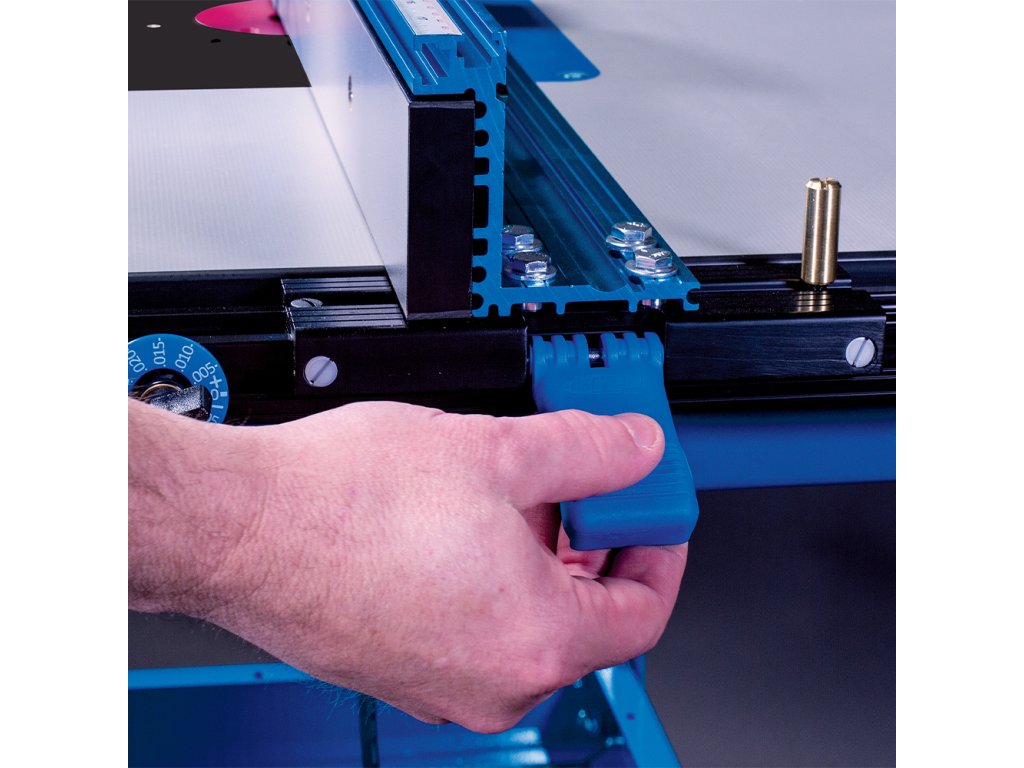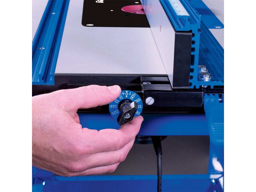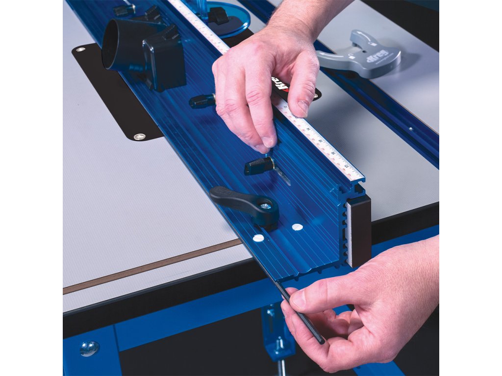 Jedním z hlavních komponentů je Kreg Podélné pravítko pro frézovací stolek vyrobené z eloxovaného hliníku. Pravítko lze nastavit pouze jednou rukou a je vybaveno T-drážkou a aretací ve formě dvou páček pro přesné frézování. Navíc je vybaveno stupnicí pro snazší nastavení pravítka dle používané frézy. Mikro posuv Vám usnadní přesné seřízení.