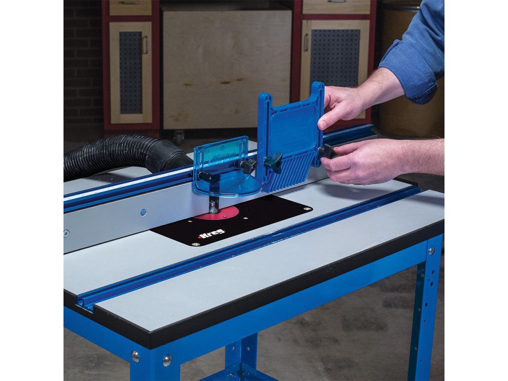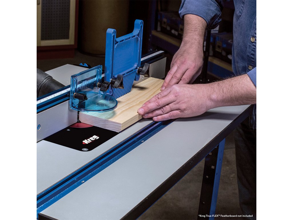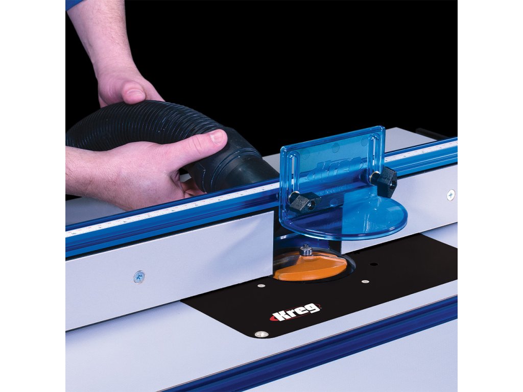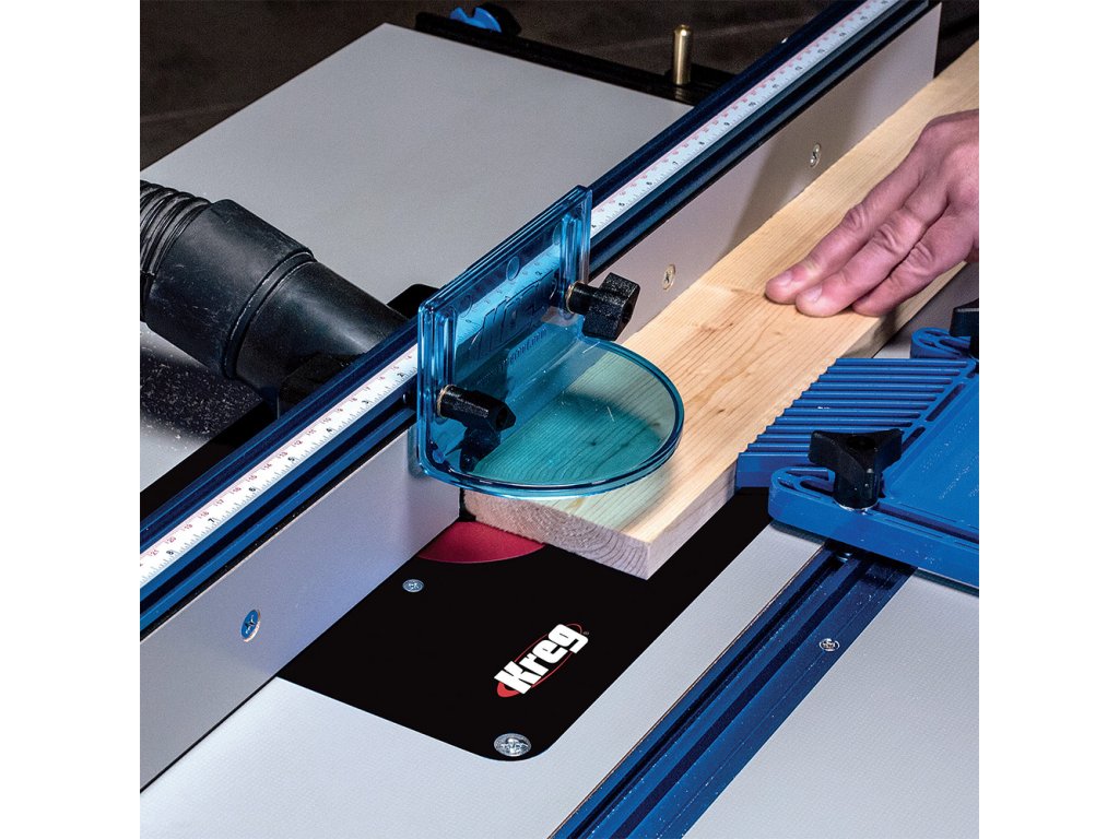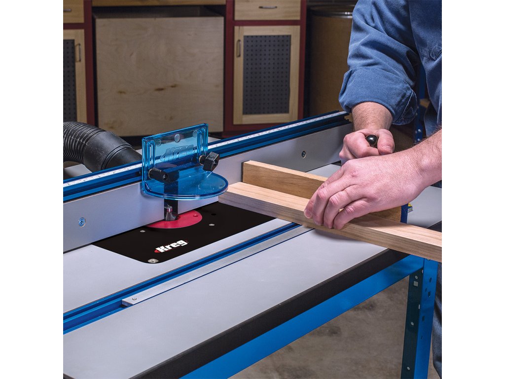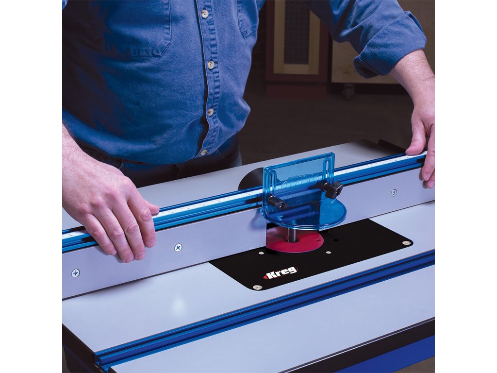 Jedním z hlavních komponentů je Kreg Podélné pravítko pro frézovací stolek vyrobené z eloxovaného hliníku. Pravítko lze nastavit pouze jednou rukou a je vybaveno T-drážkou a aretací ve formě dvou páček pro přesné frézování. Navíc je vybaveno stupnicí pro snazší nastavení pravítka dle používané frézy. Mikro posuv Vám usnadní přesné seřízení.