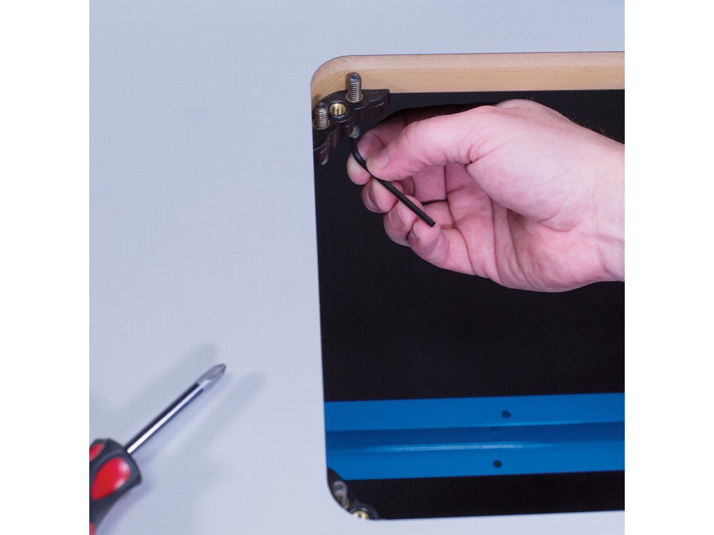 Drážka pro aretaci umožňuje podélné pravítko snadno a rychle demontovat. T-drážka umožňuje nasunutí úhlového pravítka a dalšího příslušenství. Čtyři Vyrovnávací prvky udržují desku a stůl v dokonalé rovině.