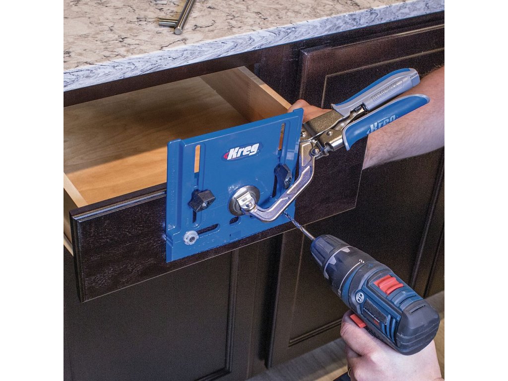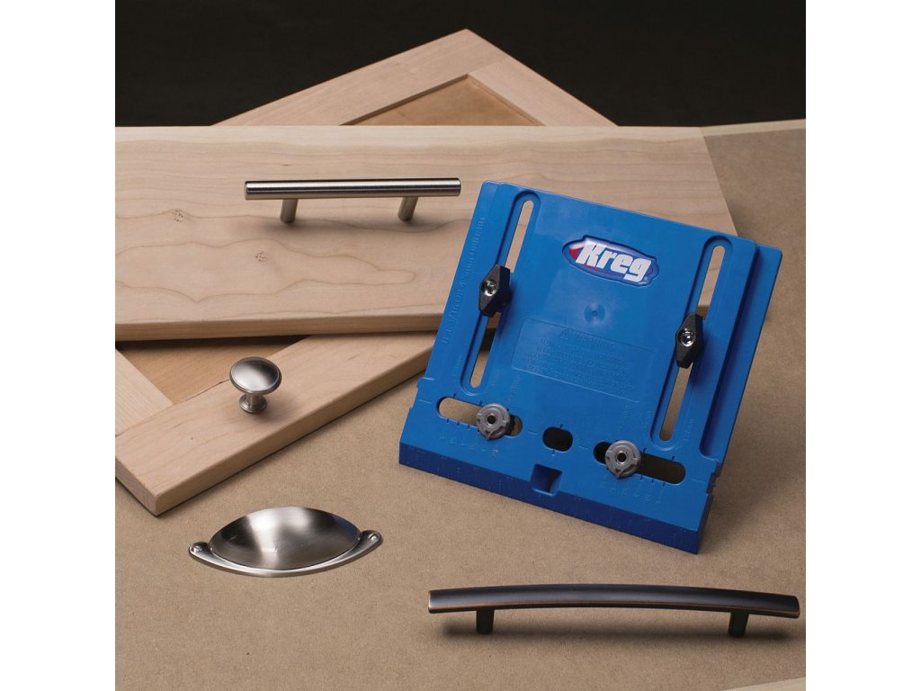 Kreg Šablona na vrtání úchytek a madel zaručuje přesné a rychlé vyvrtání otvorů pro úchytky a madla. Centrovací lišta a stupnice pomáhají přesně určit místo vrtu a pohyblivá vrtací pouzdra z tvrzené oceli zajišťují vždy dokonale vyvrtaný otvor.