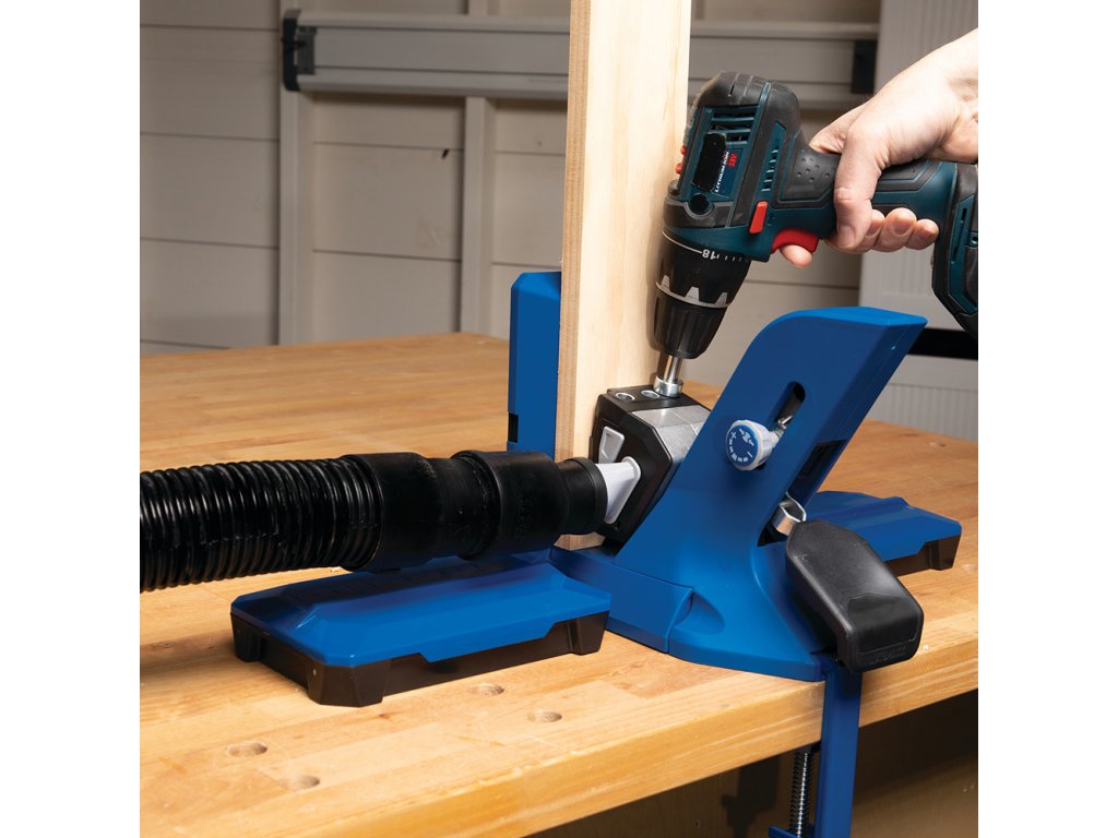 Kreg Svrtávací přípravek na skryté šroubové spoje 720PRO je dosud nejvyspělejší Kreg přípravek s funkcemi a příslušenstvím, které Vám usnadní a výrazně zrychlí vrtání skrytých spojů. Díky technologii Automaxx se automaticky přizpůsobí tloušťce materiálu pouhým stiskem rukojeti a bezproblémově upne materiály o tloušťce od 13 mm do 38 mm. GripMaxx protiskluzový povrch pevně drží vrtaný materiál, takže se nikdy nemusíte bát nečekaného vyklouznutí materiálu z přípravku. Součástí je i adaptér odsávání pro připojení odsávacího systému, aby Vaše dílna zůstala čistá, bez prachu a pilin. Robustní konstrukce vyztužená z oceli, včetně vrtacích pouzder, dělá z přípravku přesný, odolný a vysoce kvalitní nástroj. Další součástí přípravku 720PRO je Kreg Upínací sada obsahující podpěrky dlouhého materiálu. Podpěrky je možné sklopit a přípravek Vám tak při uskladnění nezabere moc místa. Uvedené příslušenství Vám poskytne více úložného prostoru, lepší podepření materiálu a vyšší stabilitu.