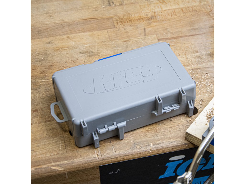 Součástí balení je pevný kufřík. Kreg Svrtávací přípravek R3 tak budete mít vždy uložen na bezpečném místě a veškeré příslušenství budete mít přehledně po ruce. Do kufříku je navíc vylisována stupnice dorazu pro lepší přípravu projektu.