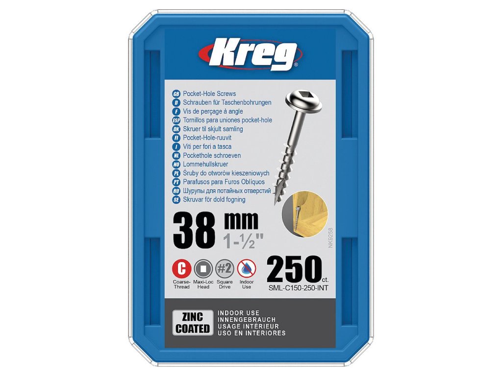Kreg Zinc Maxi-Loc Šrouby pro skryté spoje - 38 mm, hrubý závit, 250 ks