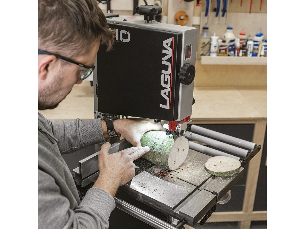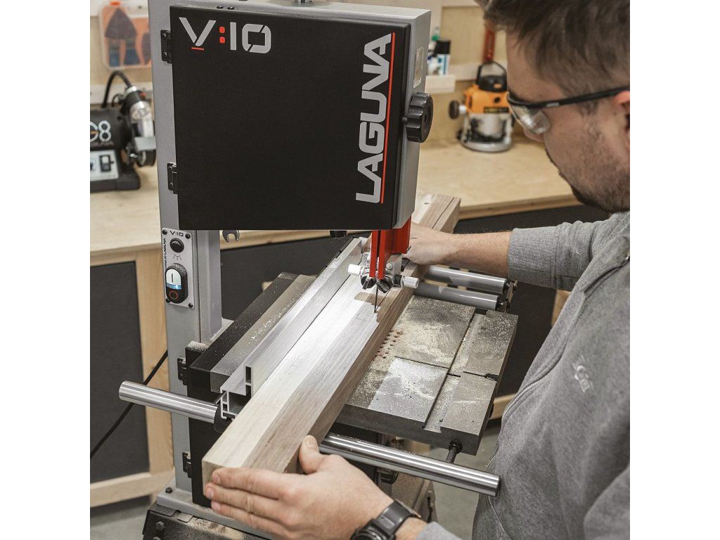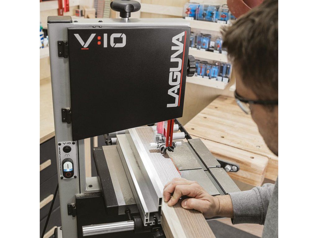 Laguna V10 je kompaktní 10" pásová pila s litinovými koly, 750W indukčním motorem a dvěma rychlostmi pásu. Nabízí přesné řezy do výšky 146 mm a profesionální výbavu.