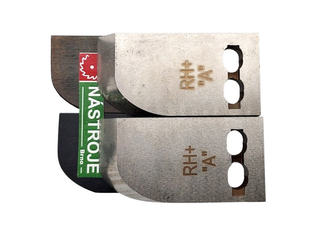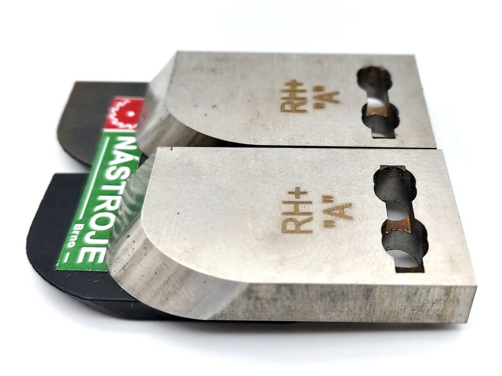 Sada obvodových nožů s omezovači a profilem A z nástrojové oceli (HL) pro výplňovou frézu VP-60. Určeno pro spodní braní – bezpečné, plynulé zaoblení s čistým povrchem a dlouhou životností břitů.