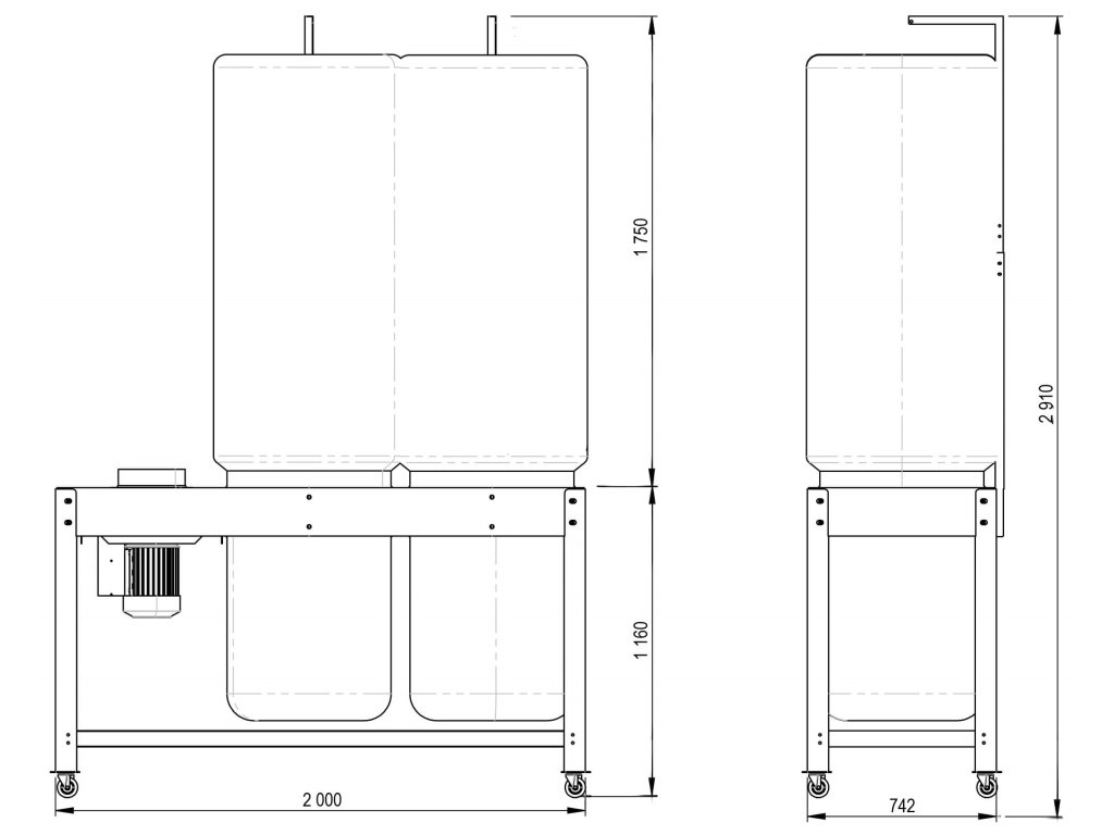Odsavač prachu a pilin 440SF s odpadními pytli z PVC, odsávací kapacity 9600 m3/h, motorem 3,7 kW a s hrdlem 250 mm. Odsávání je určeno pro odsávání olepovaček hran. Odsavač má kovový rotor je základem kvalitní konstrukce odsávání a filtry vyrobeny z FINET-PES materiálu. Patentovaný systém svorek usnadňuje nasazování odpadních vaků na skruž.