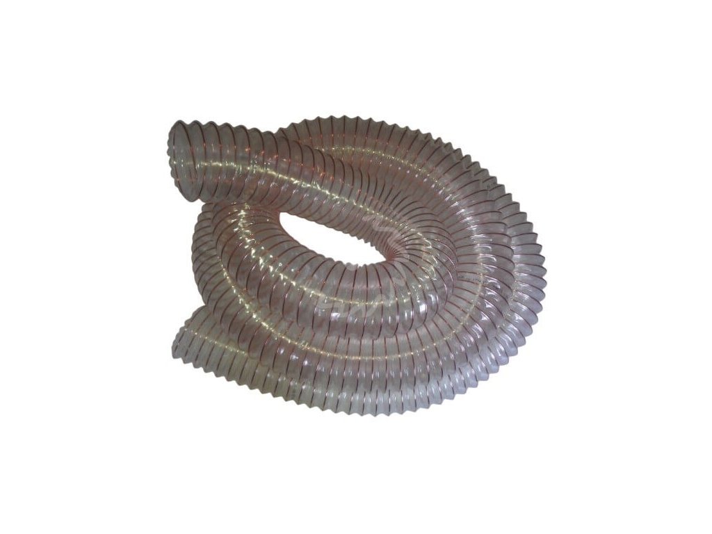 Odsávací hadice průhledná s drátem d=100 mm délky 10 bm k dřevoobráběcím strojům. Polyuretanová antistatická hadice s proti nárazovou poměděnou ocelovou spirálou. Má vysokou ohebnost a je velmi lehká. Díky použitému polyuretanu na esterové bázi má vysokou odolnost proti abrazi, povětrnostním vlivům a většině chemikálií. Dodává se ve stlačeném stavu.