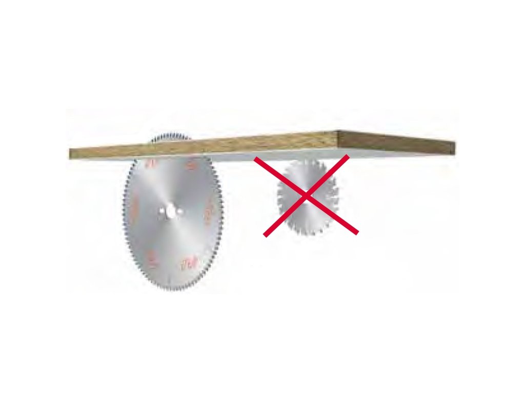 Pilový kotouč na řezání oboustranně polaminovaných dřevotřískových desek s použitím na formátovacích pilách. V kombinaci s předřezovým kotoučem dává velkou kvalitu řezu. Lze však použít i bez předřezu.