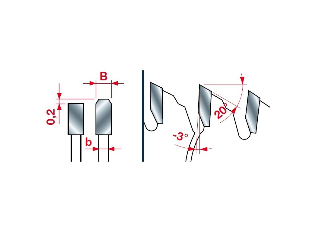 | Typ zubu: | trapézový střídavě s rovným zubem |
