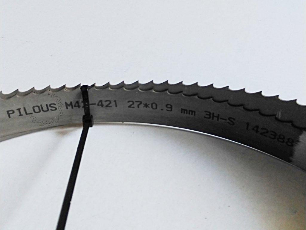 Pilový pás se špičkou zubu z nástrojové oceli, používaný k řezání železa. Tato nová technologie umožňuje podstatně delší řezání bez broušení a výměny pilového pásu. Tyto pilové pásy na dřevo jsou vhodné pro řezání měkkého, tvrdého a nejtvrdšího exotického dřeva.