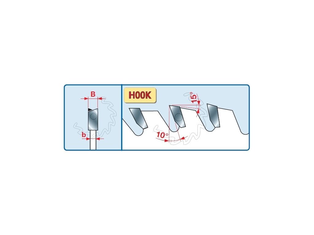 - Šikmo střídavý zub – dobrý odvod třísky, stabilita v řezu, svižný posuv