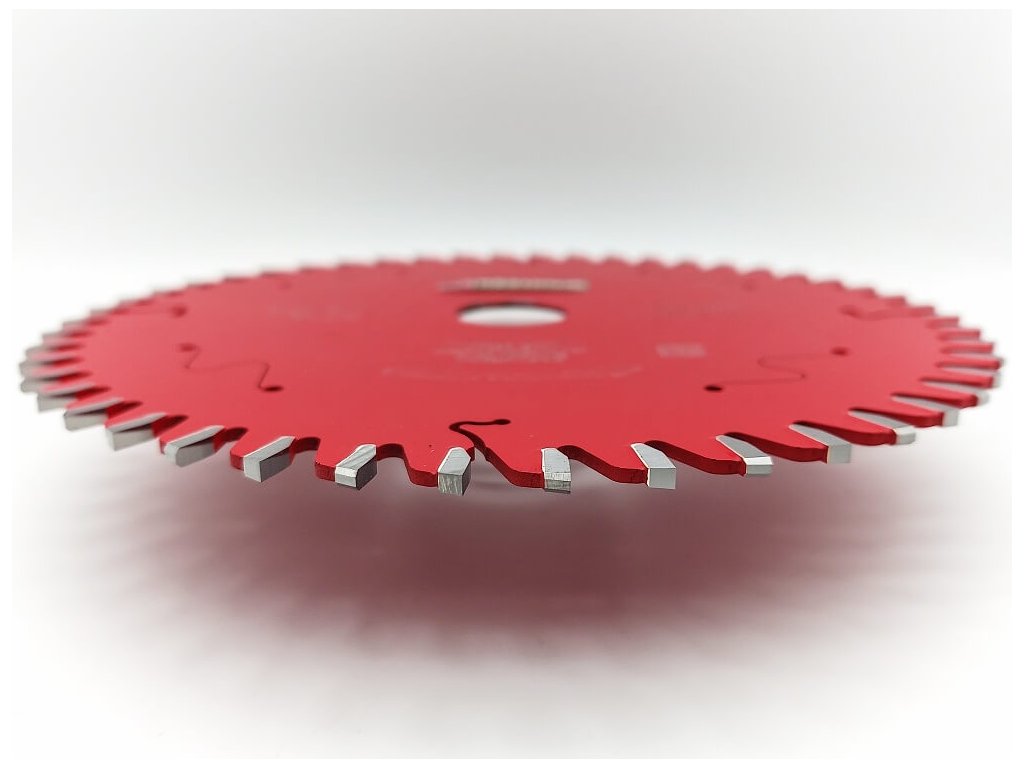 Kotouč je osazen destičkami ze slinutého karbidu SK (HM), navrženými speciálně pro řezání oboustranně polaminovaných desek. Díky tomu dosahuje kotouč dlouhé životnosti ostří i při intenzivním použití a zachovává si vysokou kvalitu řezu. Extra tenký prořez snižuje odpor v řezu, čímž výrazně šetří výkon stroje – u akumulátorových pil to znamená delší výdrž baterie a více provedených řezů na jedno nabití.