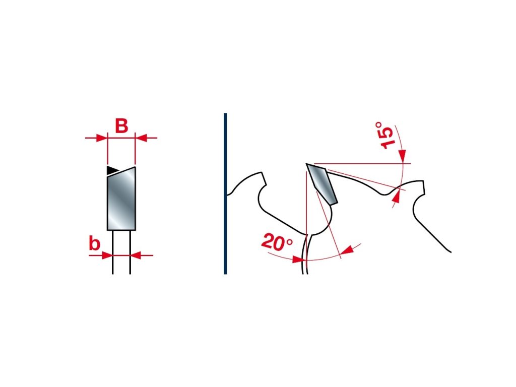 , který prodlužuje životnost nástroje snížením tepla na polovinu (lepší kvalita řezu) a snižuje možnost tvorby koroze a hromadění pryskyřice nebo smoly (menší odpor kotouče v řezu, menší náročnost na potřebu čištění kotouče) - pilové kotouče jsou odhlučněné speciálními drážkami