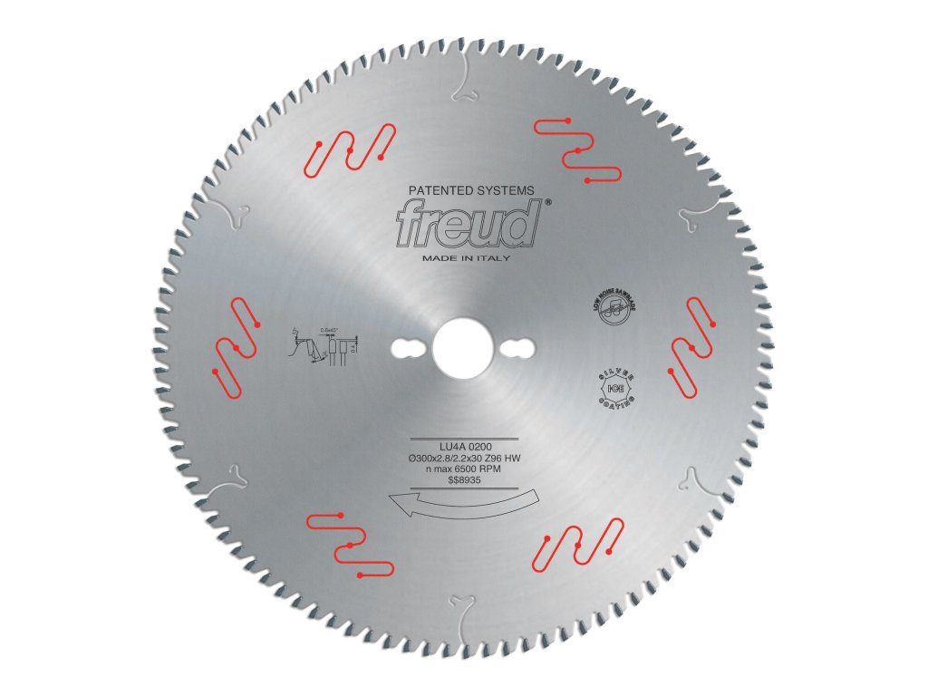 SK pilový kotouč FREUD 250x30-80WZN s negativními trapézovými zuby, na řezání plexiskla a plastů. U kotouče je použit revoluční povlak "SILVER ICETM", který prodlužuje životnost nástroje snížením tepla na polovinu (lepší kvalita řezu) a snižuje možnost tvorby koroze a hromadění pryskyřice nebo smoly (menší odpor kotouče v řezu, menší náročnost na potřebu čištění kotouče). Pilový kotouč je odhlučněný.