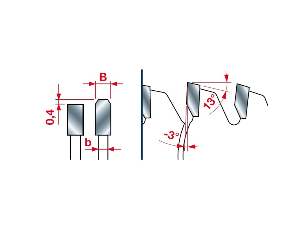 - trapézové zuby s -3° negativním sklonem zubu - lepší vedení kotouče v řezu