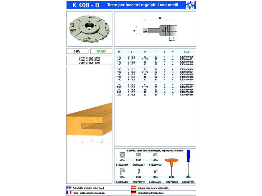 Stavitelná drážkovací fréza s šířkou drážky 8,0-15,5 mm. Féza má 4 zuby a 4 předřezy. Fréza je vhodná pro vyrábění masivu, překližky, MDF a DTD.